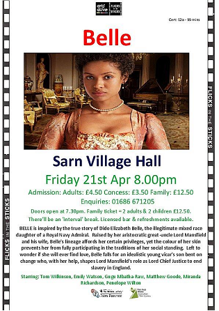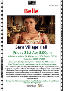 On Friday, April 21st, we will be showing ‘Belle’ in Sarn’s community hall.
