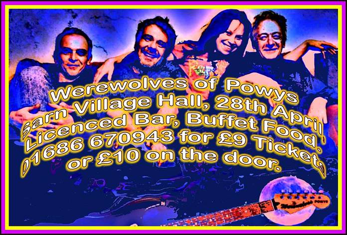 Saturday, 28th April, Sarn village hall. EDDY GARTRY & THE WEREWOLVES OF POWYS
