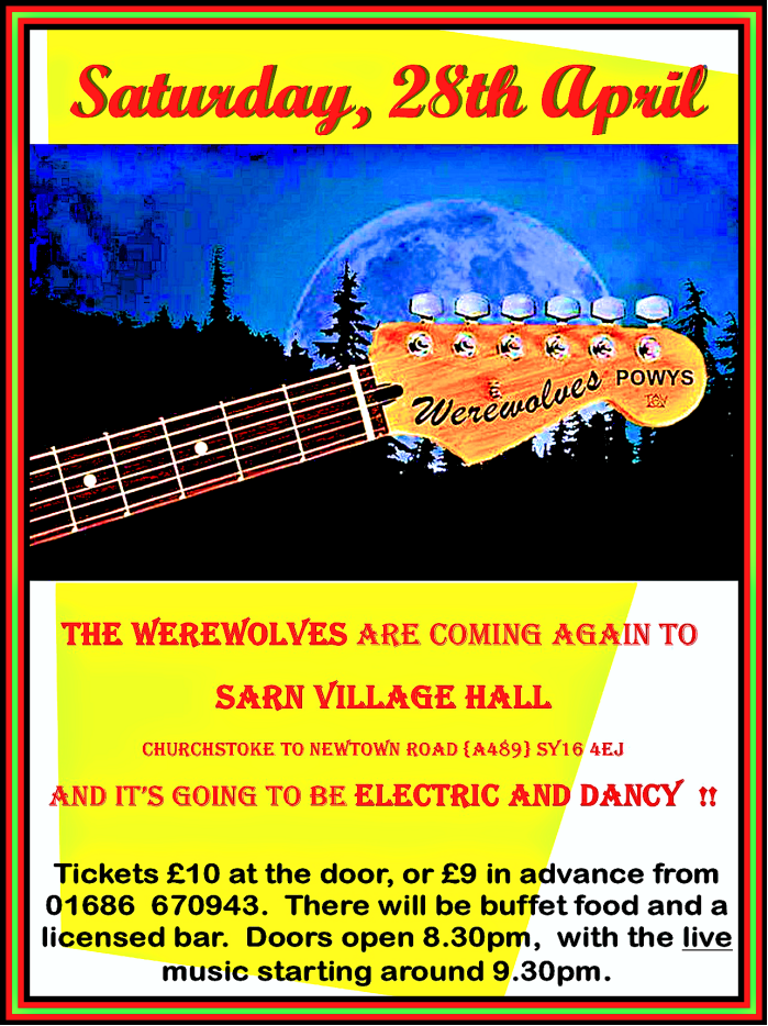 Saturday, 28th April, Sarn village hall. EDDY GARTRY & THE WEREWOLVES OF POWYS Another great evening at Sarn ! ! Share this: Share on X (Opens in new window) X Share on Facebook (Opens in new window) Facebook Like Loading... Related Published by owenandbarb View all posts by owenandbarb