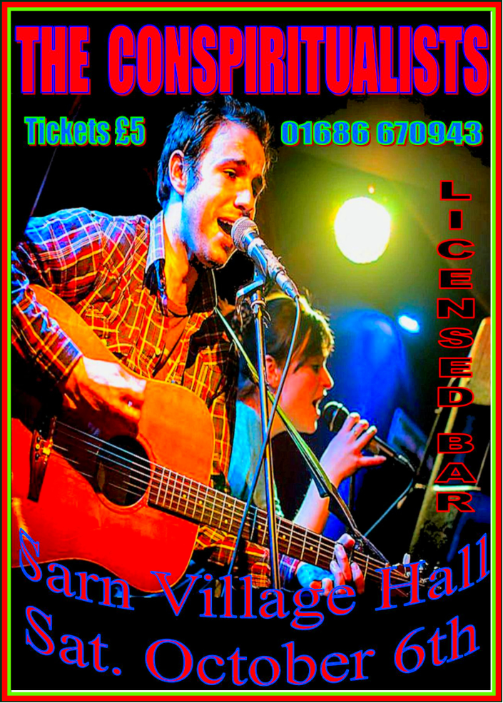 SARN VILLAGE HALL, SATURDAY, 6TH OCTOBER. Doors open 8pm. THE CONSPIRITUALISTS SARN VILLAGE HALL SATURDAY, 6TH OCTOBER https://www.youtube.com/watch?v=ncynU2qWoGo Share this: Share on X (Opens in new window) X Share on Facebook (Opens in new window) Facebook Like Loading... Related Published by owenandbarb View all posts by owenandbarb