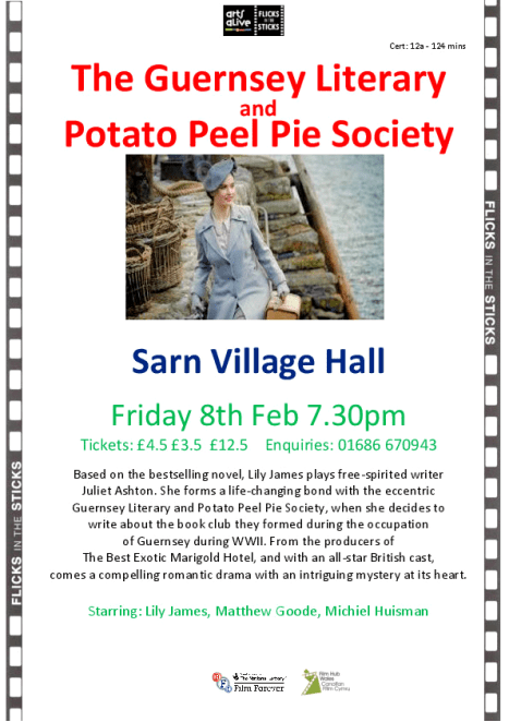 Next Friday, 8th February, we will be showing The Guernsey Literary and Potato Peel Pie Societyat Sarn village hall.