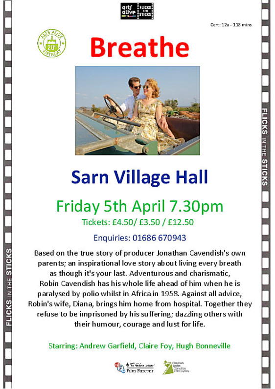 On Friday, 5th April, we will be showing ‘BREATHE’at Sarn village hall.